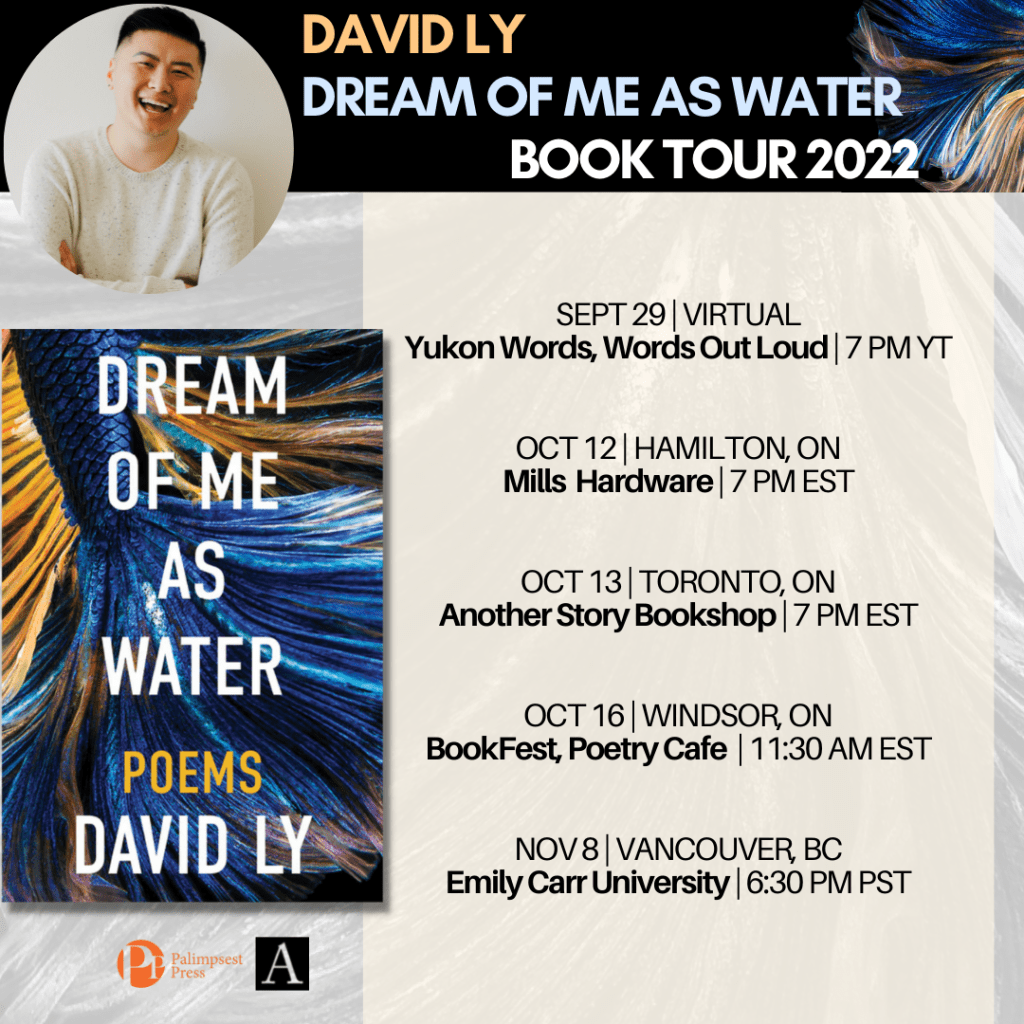 September 22, 2022November 30, 2022 by David Ly Book Tour: Dream of Me as Water The book tour for Dream of Me as Water kicks off! Share this: Click to share on X (Opens in new window) X Click to share on Facebook (Opens in new window) Facebook Like Loading... Related